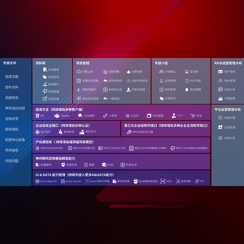 医疗器械产品上市前,,,,要熟悉严格与繁复评审标准,,,,整理分析监管机构指导文件中的海量信息。。。企业急需一个智能化解决方案,,,,提升知识管理效率,,,,提高评审通过率,,以提升其市场竞争力。。。